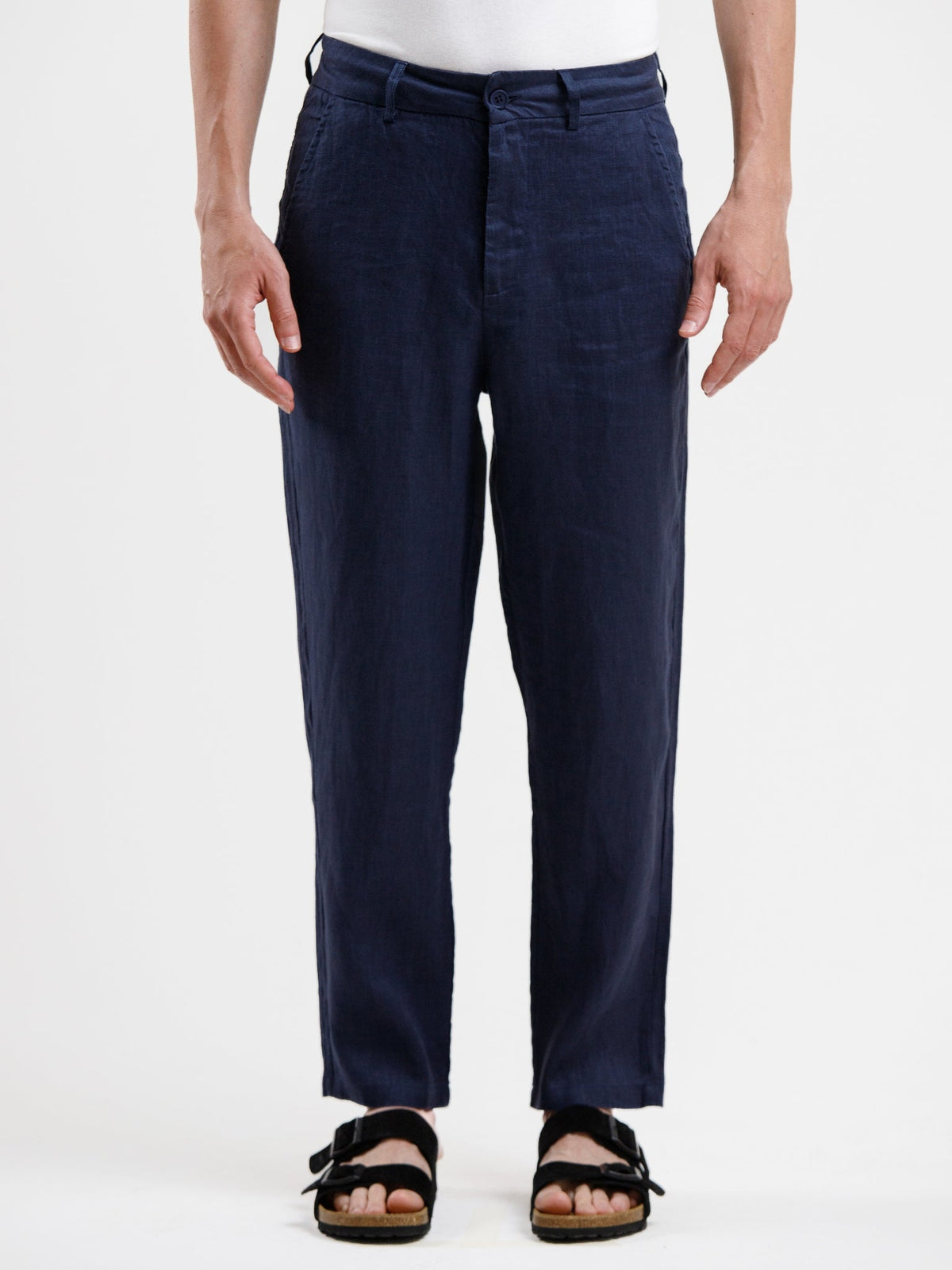 100% Linen Regular Fit Trousers - Navy Blue - 30