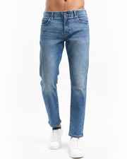 This relaxed fit denim offers a classic, straight silhouette for an easygoing look and all day comfort. Crafted from soft, stretchable cotton blend fabric, it features a button closure, and durable stitching. The light blue wash adds a versatile, casual appeal, perfect for everyday wear.
