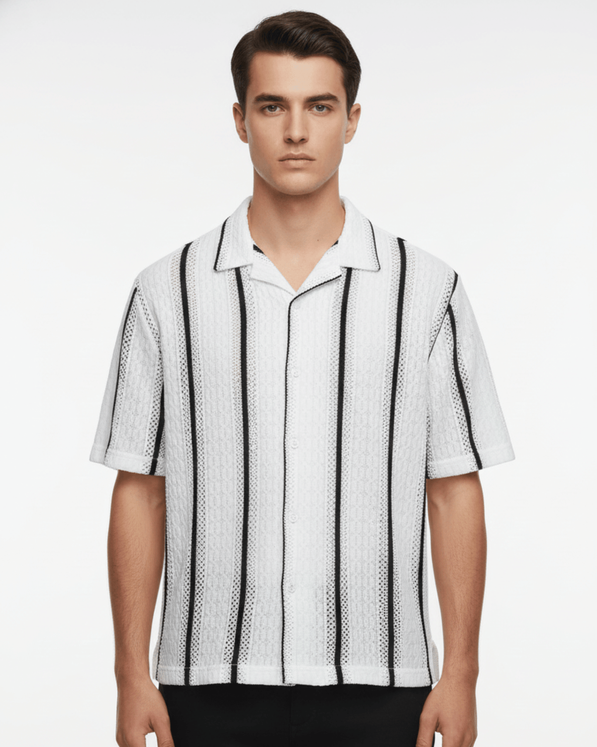 This Cuban collar knitted shirt delivers a relaxed, modern look with a soft, breathable feel. The lightweight knit drapes naturally, offering easy movement while keeping a sharp, structured appearance. Its open collar and textured pattern create an elevated casual vibe, making it ideal for evenings out, weekends, or everyday style.