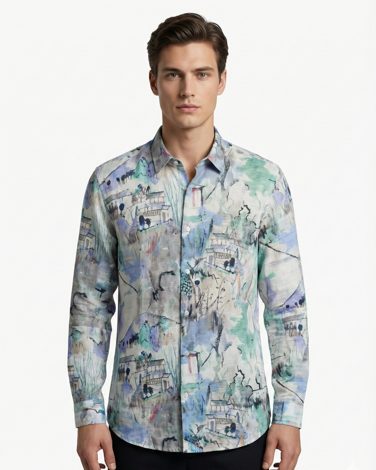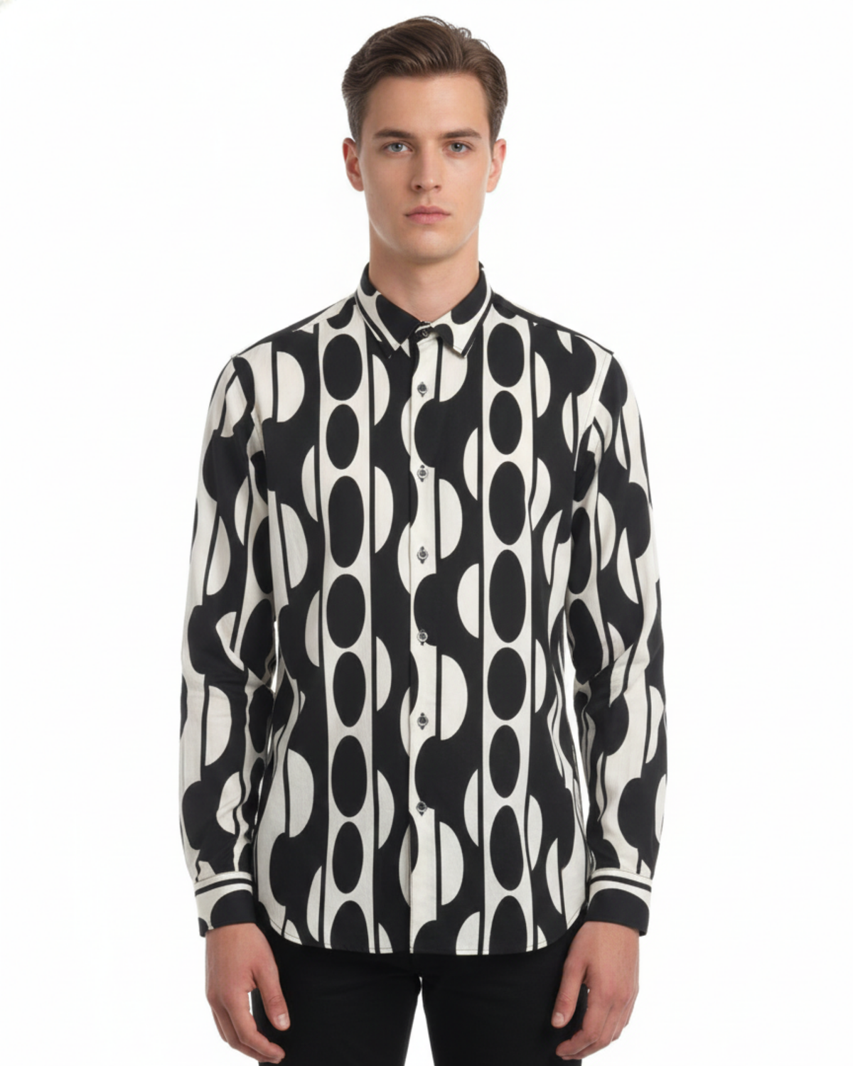 Make a statement with this contemporary long sleeve shirt, featuring a striking digital print design that captures attention. Crafted from quality fabric, it delivers both comfort and style for everyday wear or casual outings. The extended sleeves provide versatile layering options, while the bold print adds personality to your wardrobe. Perfect for those seeking modern fashion with an edge.