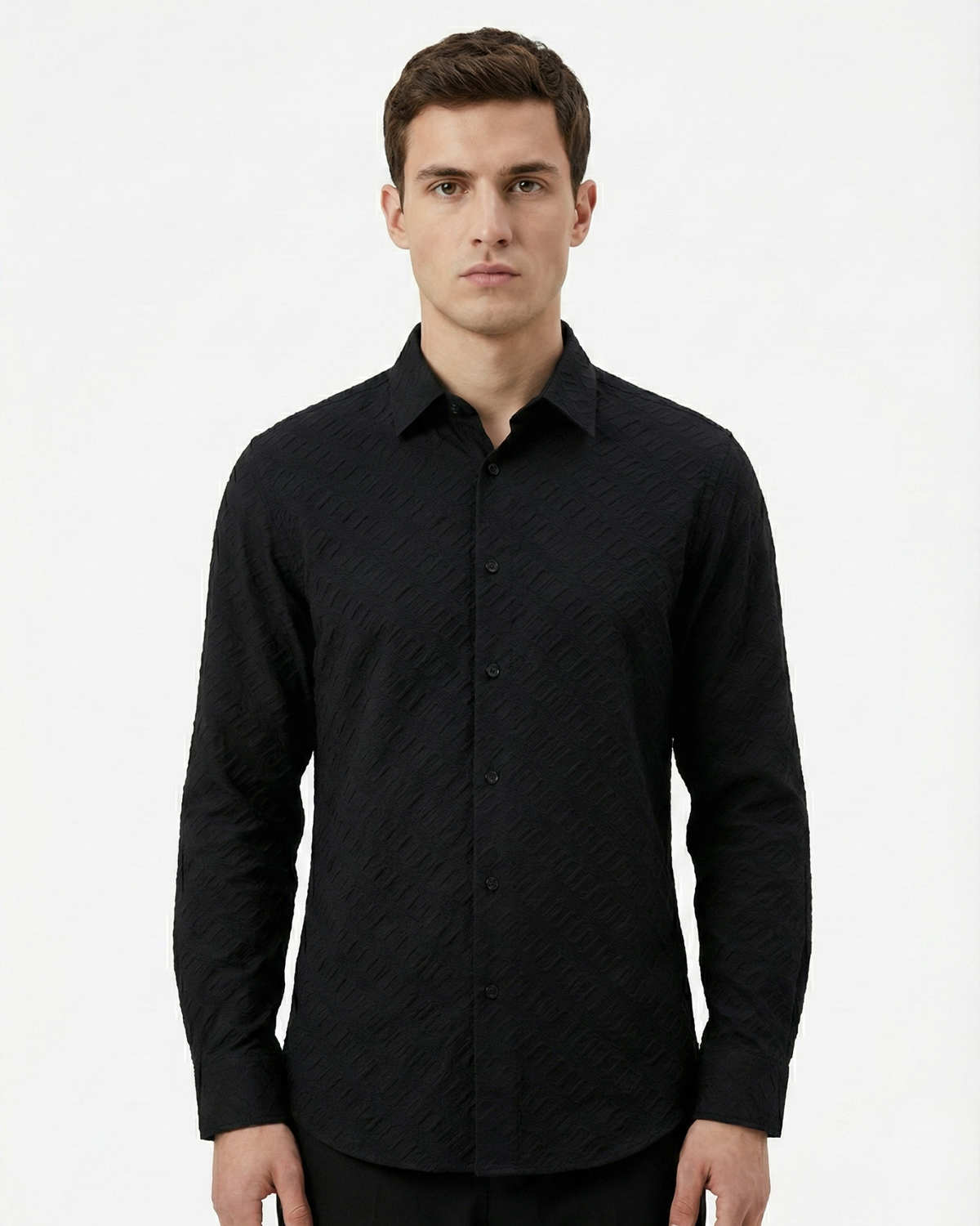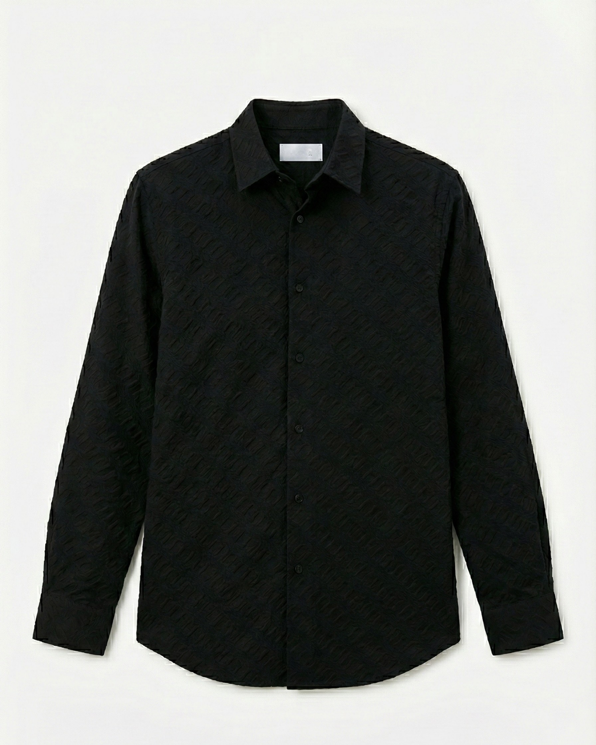 LUXURY JACQUARD FABRIC LS SHIRT - Black / M