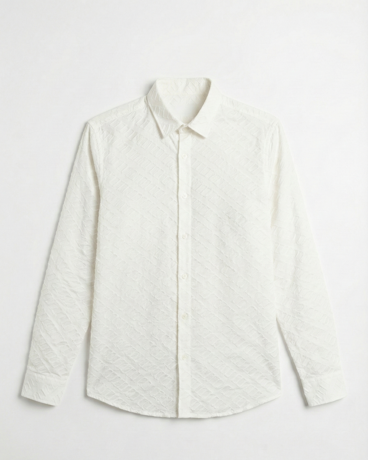 Elevate your wardrobe with this sophisticated long sleeve shirt crafted from premium jacquard fabric. The intricate woven pattern adds visual depth and texture, creating a refined aesthetic that transitions seamlessly from professional settings to elevated casual wear. The structured jacquard weave ensures durability while maintaining a luxurious drape. Perfect for those who appreciate quality craftsmanship and timeless style.