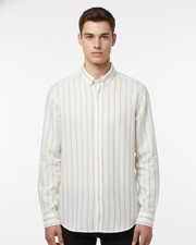 Designed in a clean, regular fit, this long-sleeve linen shirt gives a relaxed, breathable feel while keeping a refined look. The natural linen fabric is lightweight, smooth to the touch, and ideal for warm weather or all-day comfort. Its crisp structure and subtle texture make it easy to dress up or down, whether worn tucked for a sharper silhouette or untucked for a laid-back style.