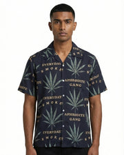 This satin shirt features an all over Japanese style print, blending mythic energy with modern edge. The silky satin finish delivers a luxe feel, while the relaxed short sleeve cut and camp collar keep it breathable and easy to wear. Ideal for standout fits, day or night.