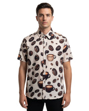 STALIO PRINTED SHORT SLEEVE SHIRT 006 - Coffee / S